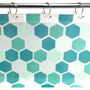 Cortina De Baño Plástica D’accord Hexágonos Verde 180×180 Cm Peva Moderna Liso