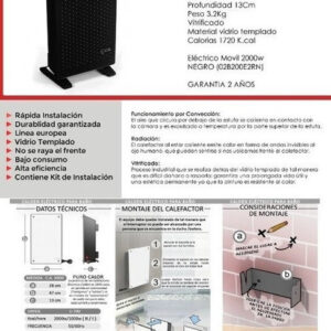 Calefactor Calden Tiro Balanc 3000 Cal Vidrio Templado Negro