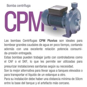 Bomba Centrífuga 1 Hp Protector Térmico 25 Mt Pluvius Cpm158