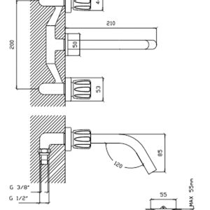 Griferia Lavatorio Pared Bicomando Aqualaf 5015 Ac Inox
