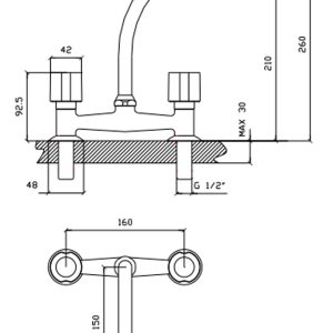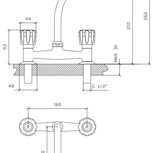 Grifería Cocina Pared Texas Mozart Volante Cruz