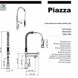Grifería Monocomando Cocina Gourmet Extraíble Piazza 10309