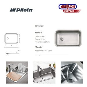 Pileta Simple Mi Pileta 410p Acero Inoxidable 60x37x24cm Brillante Plateado
