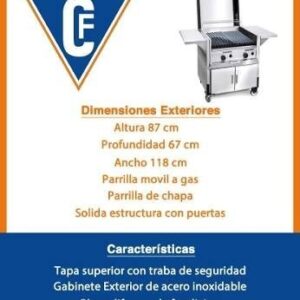 Parrilla Gas 70cm Tas Eme Con Tapa Y Carro Completa
