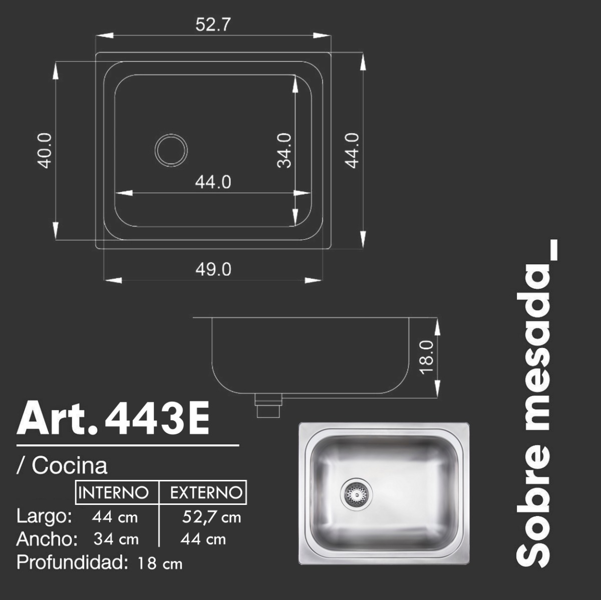 Su diseño armónico y sofisticado aportan un toque de distinción en tu cocina. La linea de sobre mesada de Mi Pileta esta elaborada con acero inoxidable de alta pureza con el objetivo de garantizar una mayor resistencia y durabilidad en cada una de las opciones.