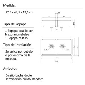 Bacha De Cocina Doble Johnson Acero Quadra Q76 A