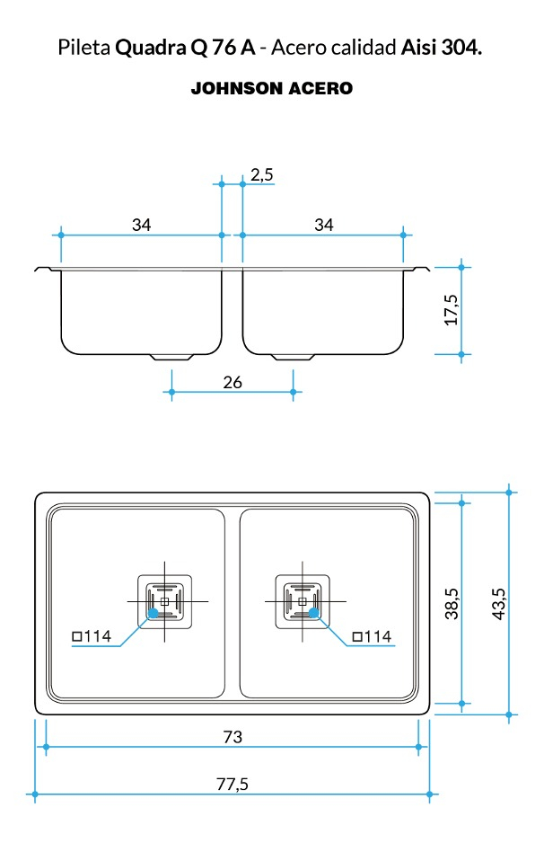 Bacha De Cocina Doble Johnson Acero Quadra Q76 A