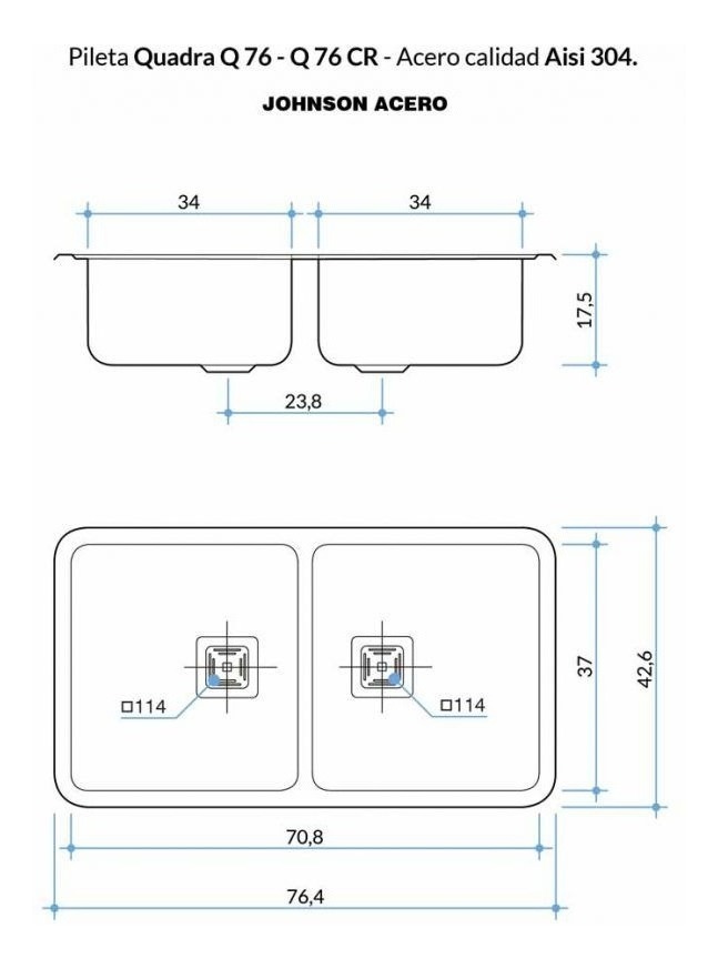 Bacha Cocina Doble Johnson Quadra Q76 Bajo Mesada
