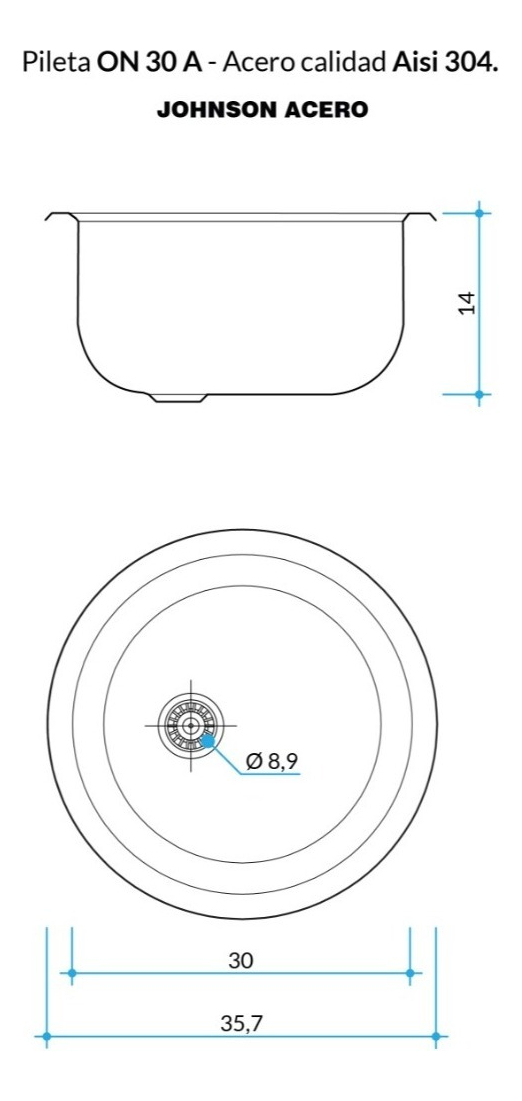 Bacha Cocina Johnson On30 A 34×14 Ac Inox Redonda Sobremesa
