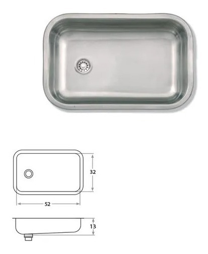 Mi Pileta Mi Pileta Económica 103ec Acero Inoxidable Plateado Pulido Standar 52 Cm 32 Cm 15 Cm 0.08 Mm
