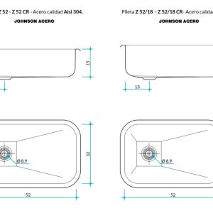 Bacha De Cocina Simple Johnson Zz52 52x32x15 Acinox Bajomesa