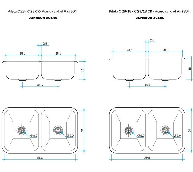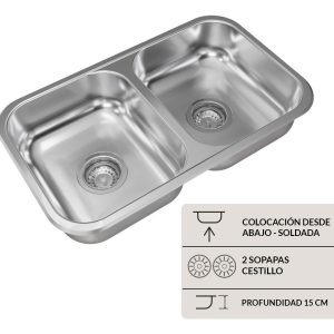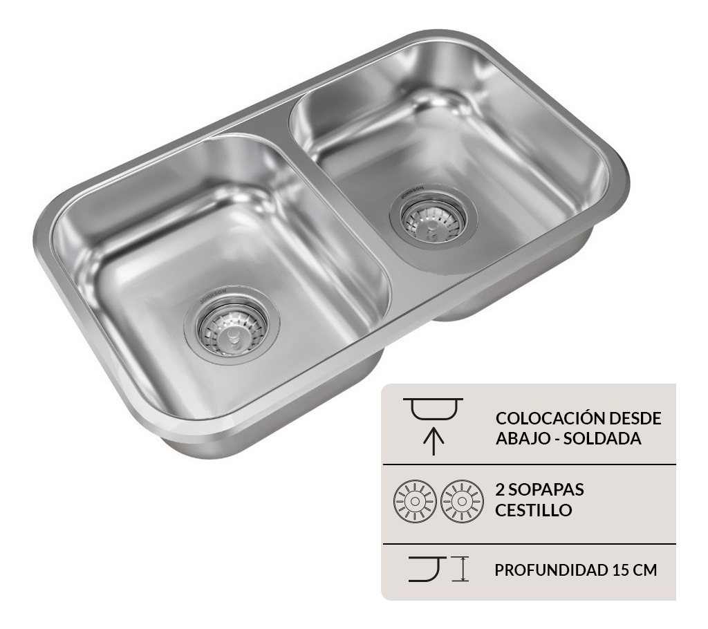 Bacha De Cocina Doble Johnson Acero C 28 Plateado