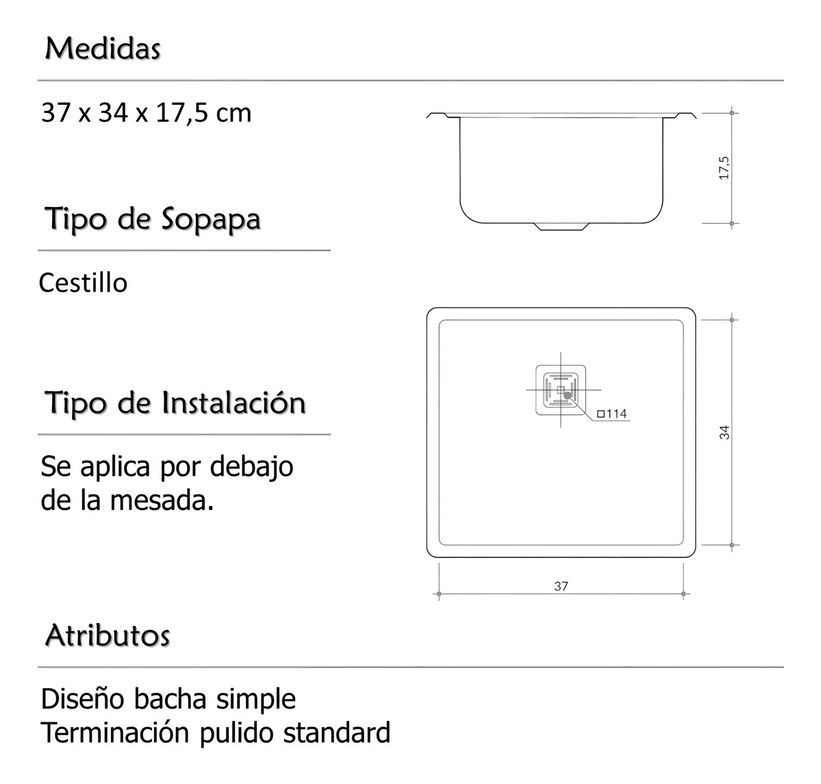 Bacha De Cocina Simple Johnson Acero Quadra Q 37 Plateado