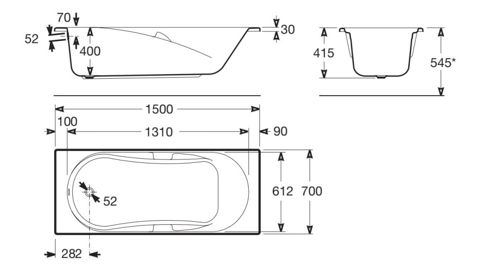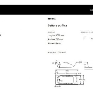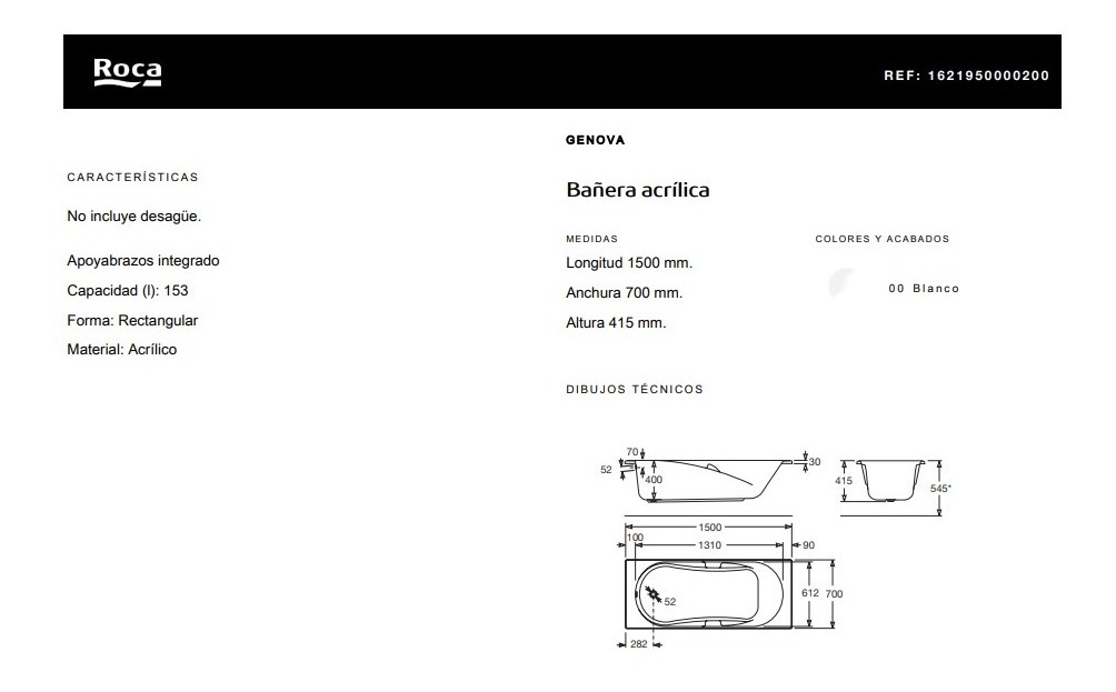 Bañera Acrílica Génova 1,50 X 70 Blanca Roca