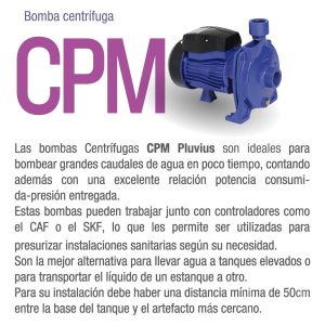 Bomba Centrífuga Pluvius Cpm-158 1 Hp 95 L/min 25m Azul 50 Hz Monofásica