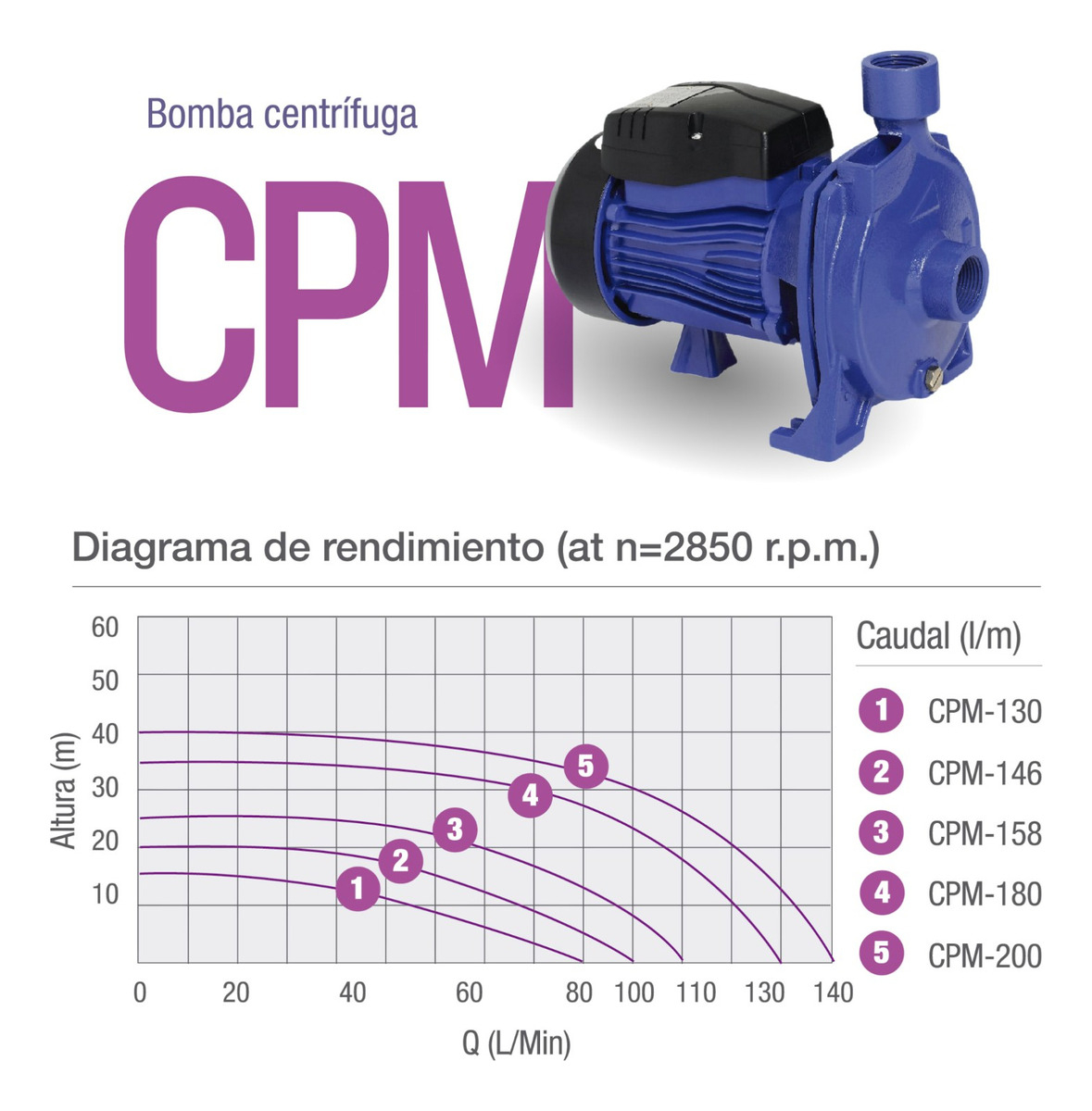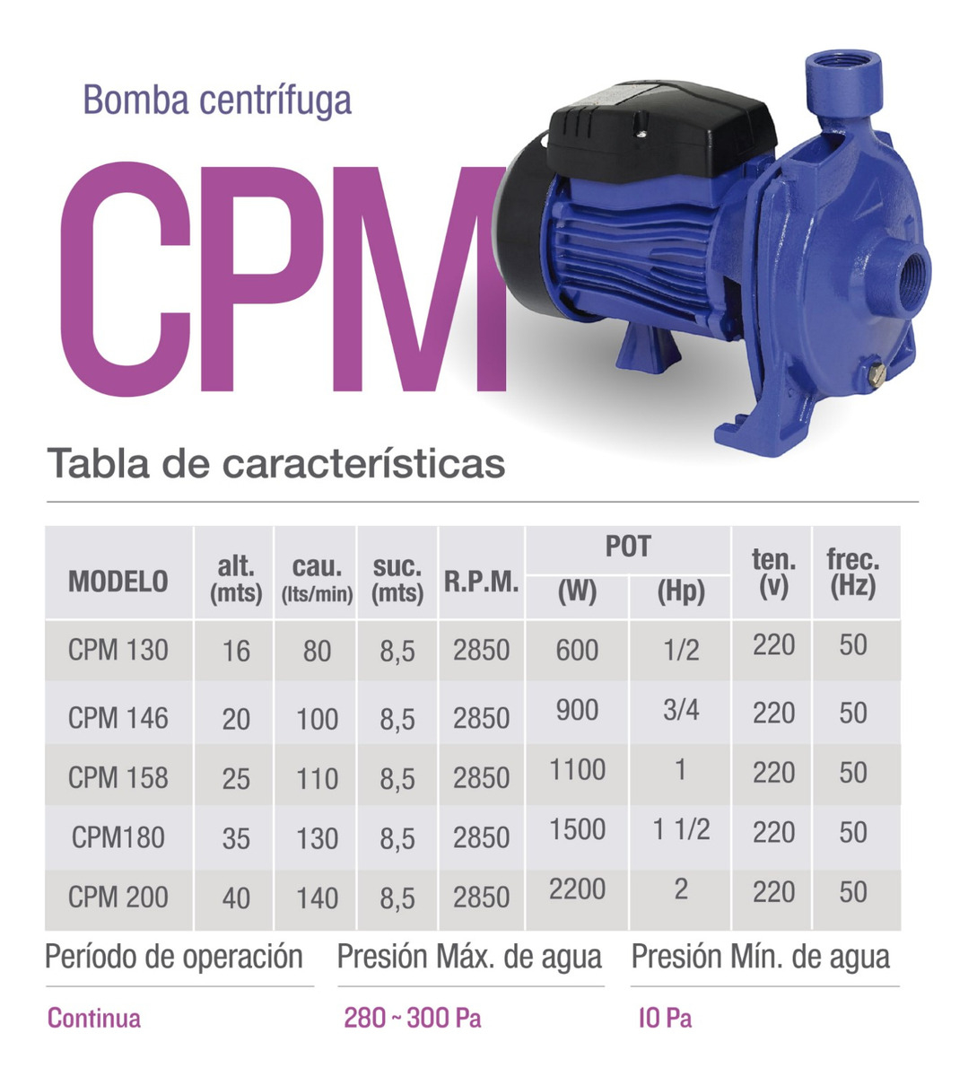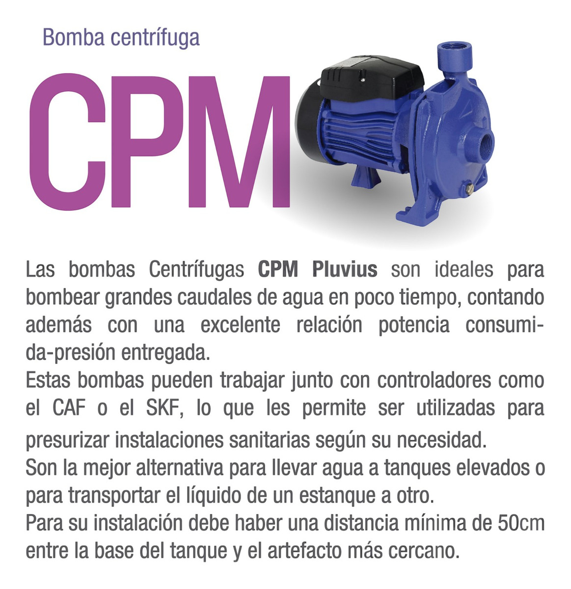 Bomba Centrífuga Pluvius Cpm-158 1 Hp 95 L/min 25m Azul 50 Hz Monofásica