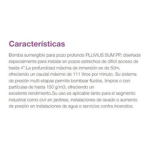 Bomba Sumergible Para Pozo Profundo Pluvius Sum Pp´1 Hp