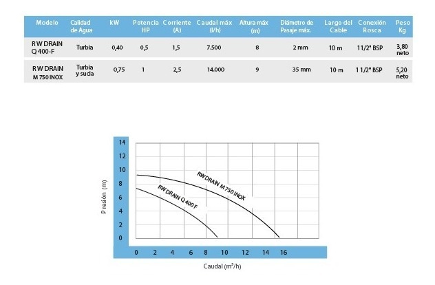 Bomba Sumergible Rw Drain Q 400 Termoplástica Rowa