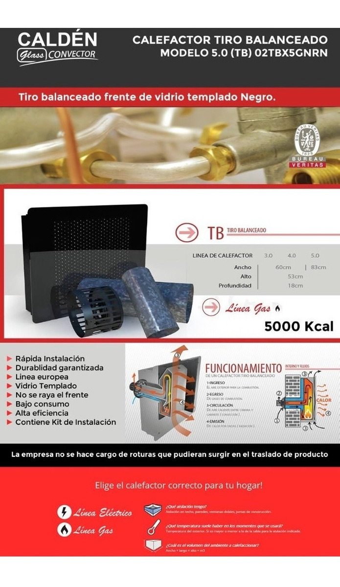 Calefactor Vidrio Calden Tiro Balanceado 5000 Cal