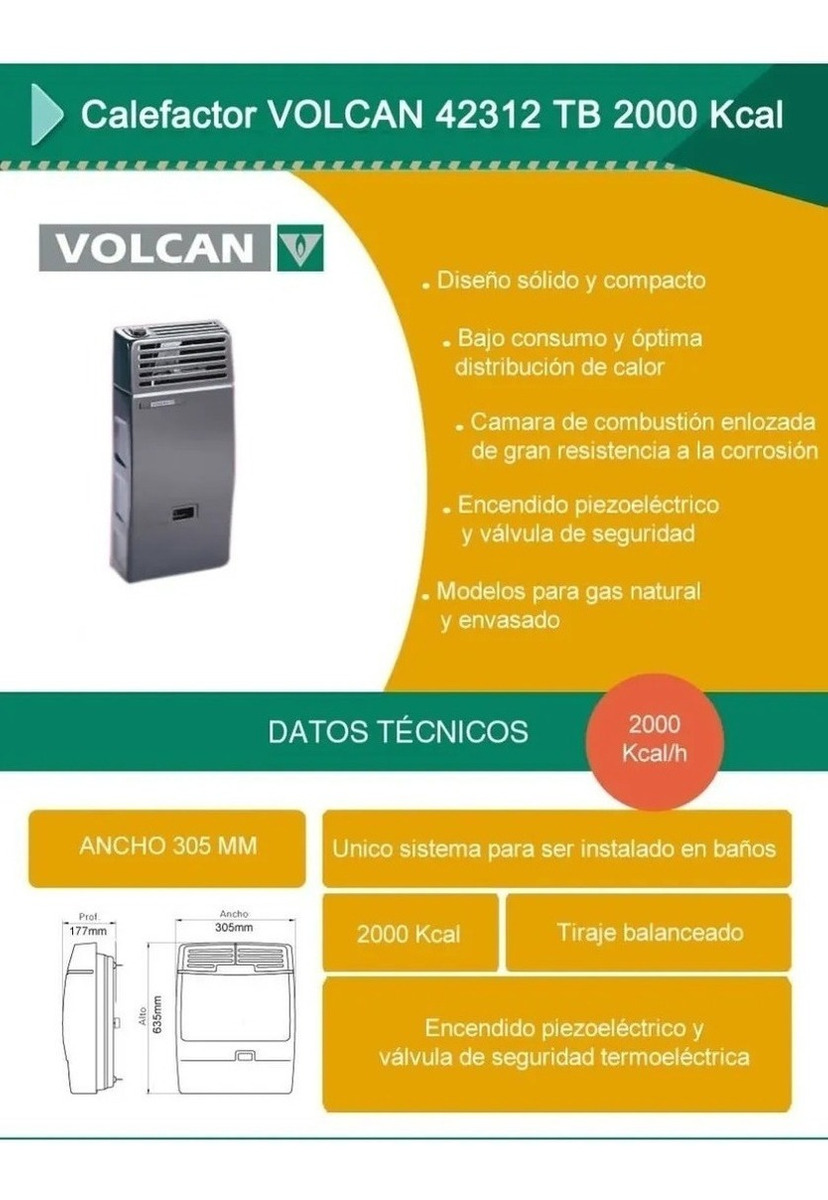 Calefactor Volcan 42316v Tb 2000 Kcal Gas Natural