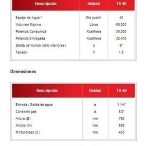 Los climatizadores de piscina PEISA TX40, utilizan gas como fuente de energía. Se fabrican en chapa de acero galvanizada, protegida por pintura poliester polimerizada en horno, lo que garantiza una muy larga vida útil en instalaciones a la intemperie. La aislación interna con fibras cerámicas y los materiales y diseño de todos sus componentes garantizan gran eficiencia térmica, que se traduce en un muy bajo consumo de gas.El climatizador PEISA TX40, ha sido diseñado para su instalación a la intemperie y en las cercanías de la piscina, haciendo muy sencilla su instalación.