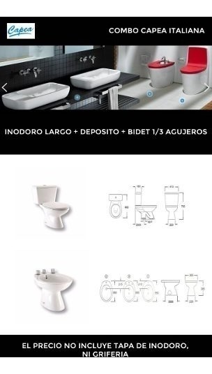 Combo Capea Italiana Inodoro Largo + Deposito + Bidet 1/3 Ag