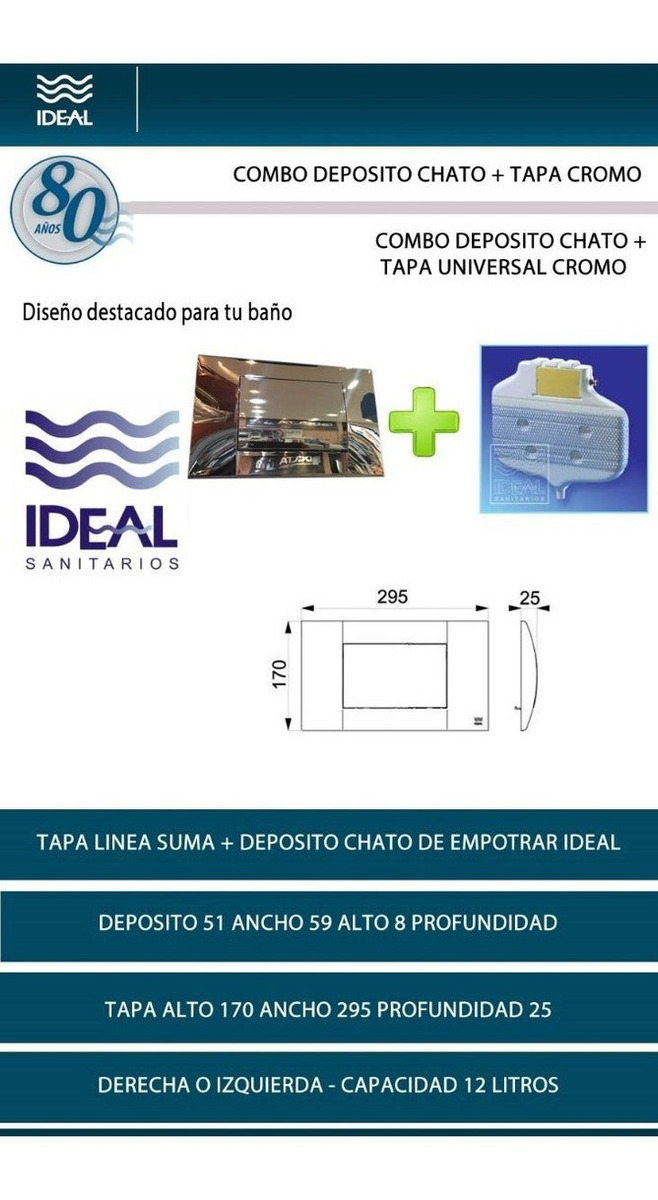 Combo Deposito Ideal Chato + Tapa Universal Cromo