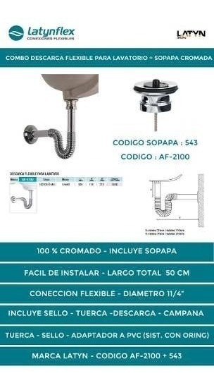 Combo Descarga De Lavatorio Latyn + Sopapa Cromo Delta
