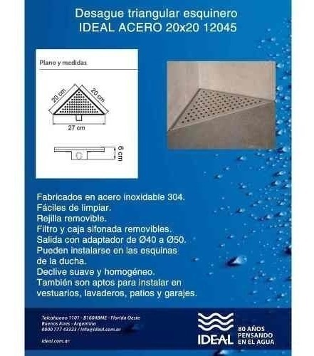 Desague triangular esquinero IDEAL ACERO 20×20 12045