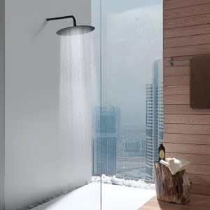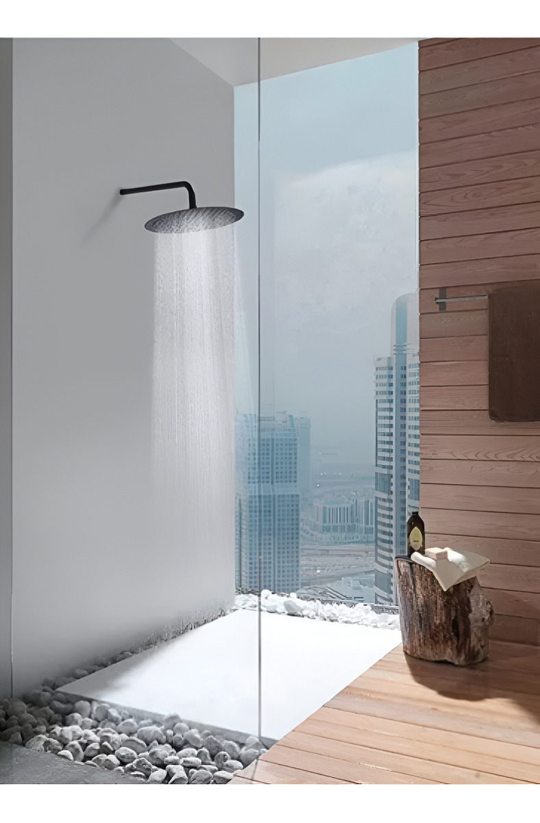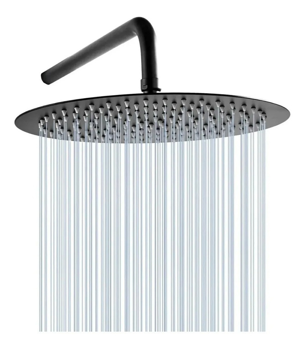 Flor De Ducha Redonda 8 + Caño Negro A. Inoxidable Mozart Acabado Cepillado