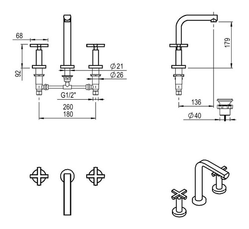 Griferia Lavatorio De Pared Fv Dominic 203/85l