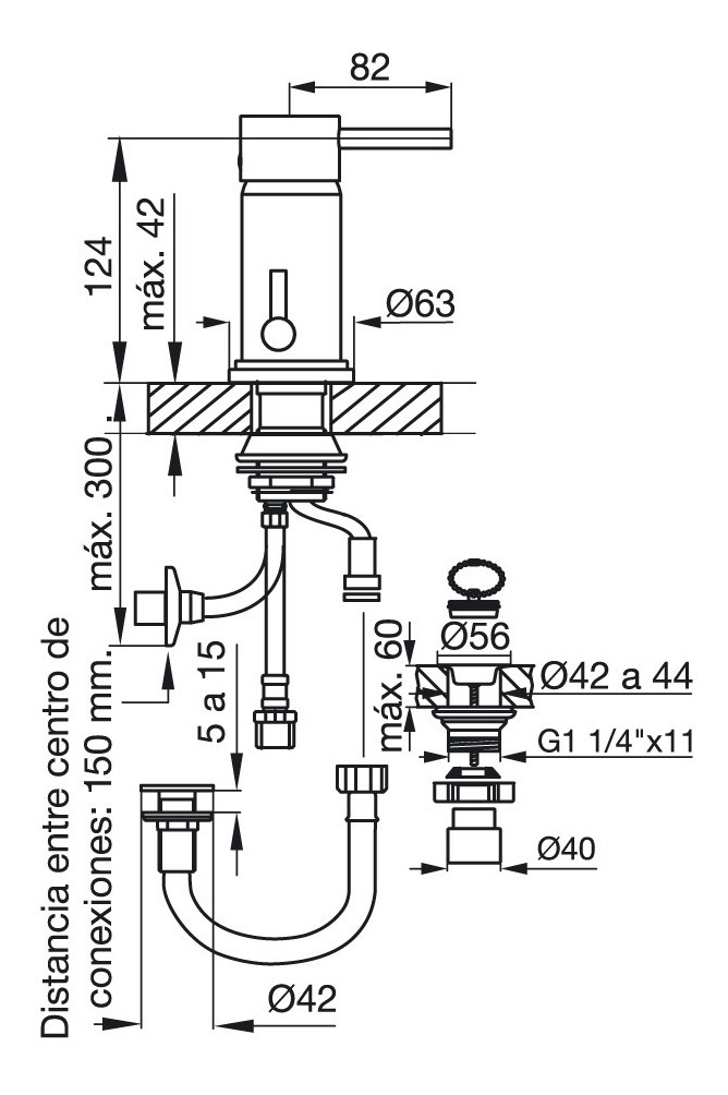 Combo Descarga De Lavatorio Latyn + Sopapa Cromo Delta