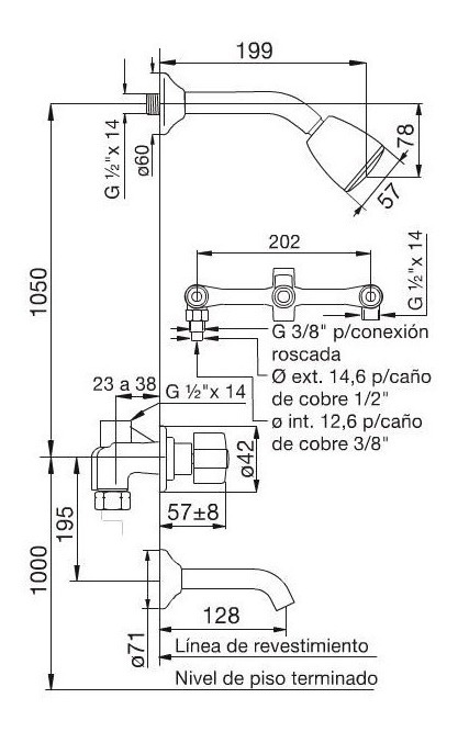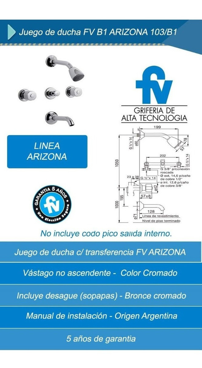 Griferia Ducha Con Transferencia Fv B1 Arizona 103/b1p