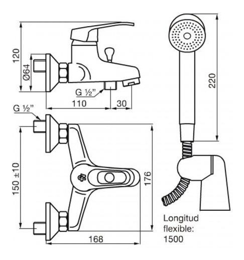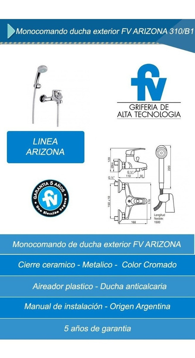 Griferia Fv Baño Ducha Monocomando Cromo Fv Arizona 310/b1