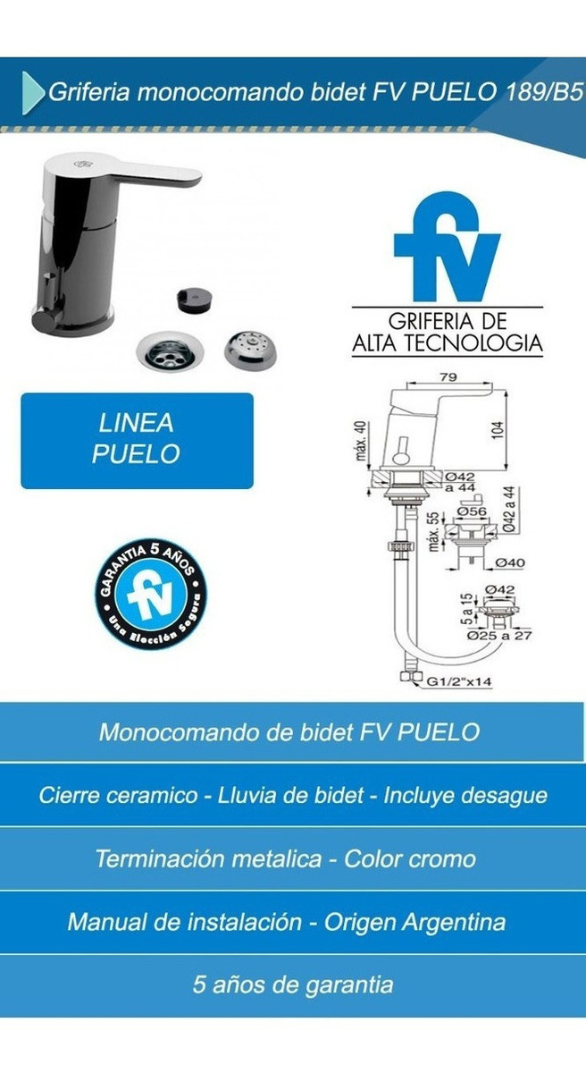 Griferia Monocomando Bidet Fv Puelo 189/b5