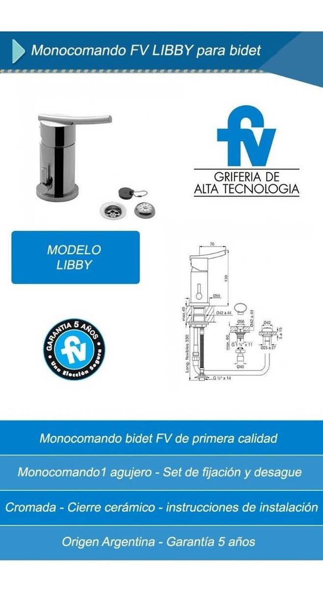 Griferia Monocomando Fv Libby Bidet 189/39
