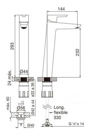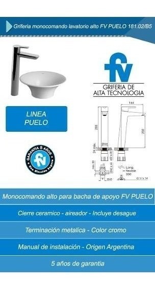 Griferia Monocomando Lavatorio Alto Fv Puelo 181.02/b5