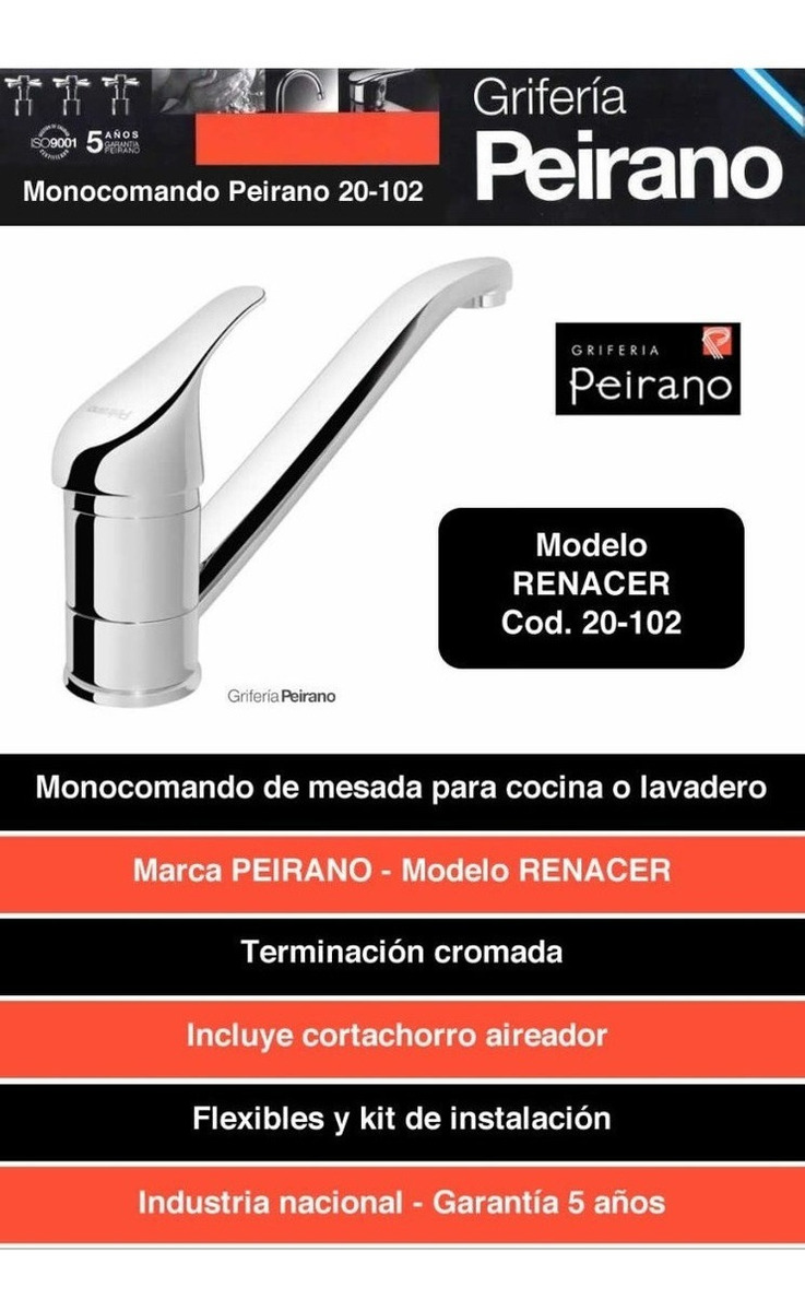 Griferia Monocomando Peirano Renacer – Oferta!! – Cod 20-102