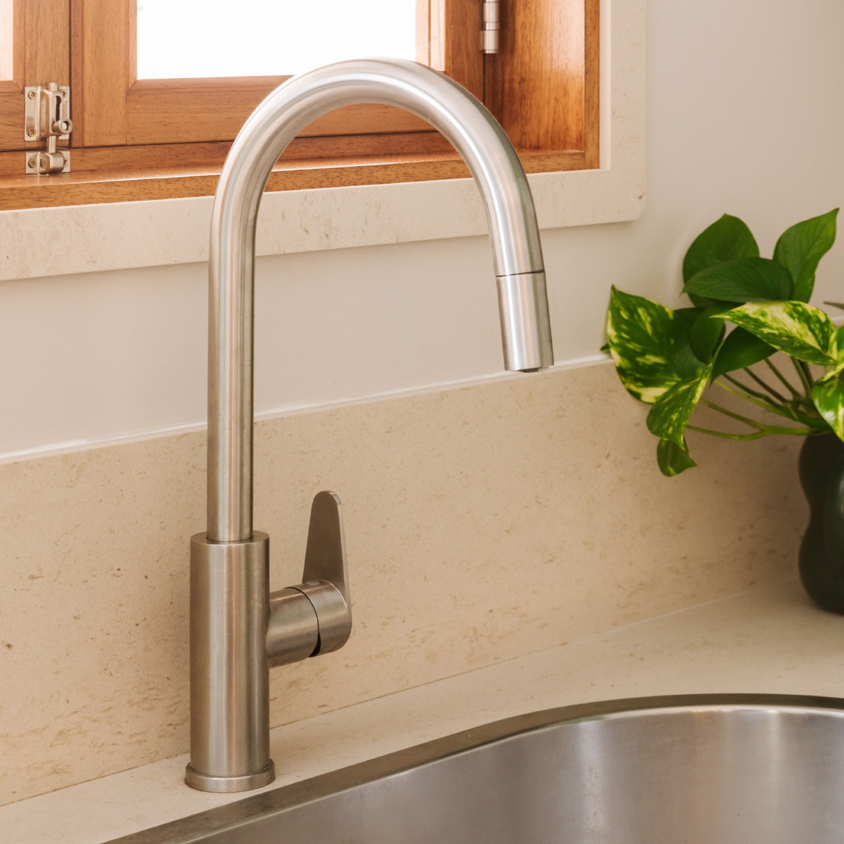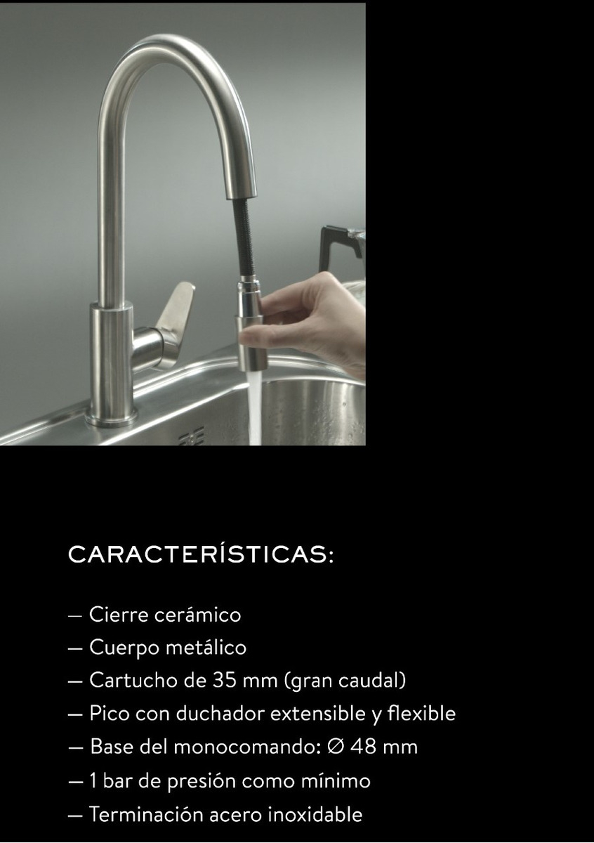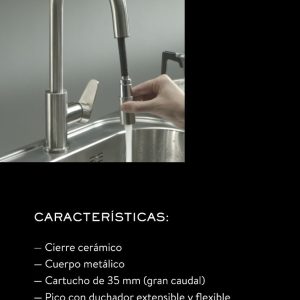 Con pico extensible, este grifo te va a dar mayor practicidad para llegar a donde necesites. Evitá derrames y mantené tu espacio siempre limpio.
