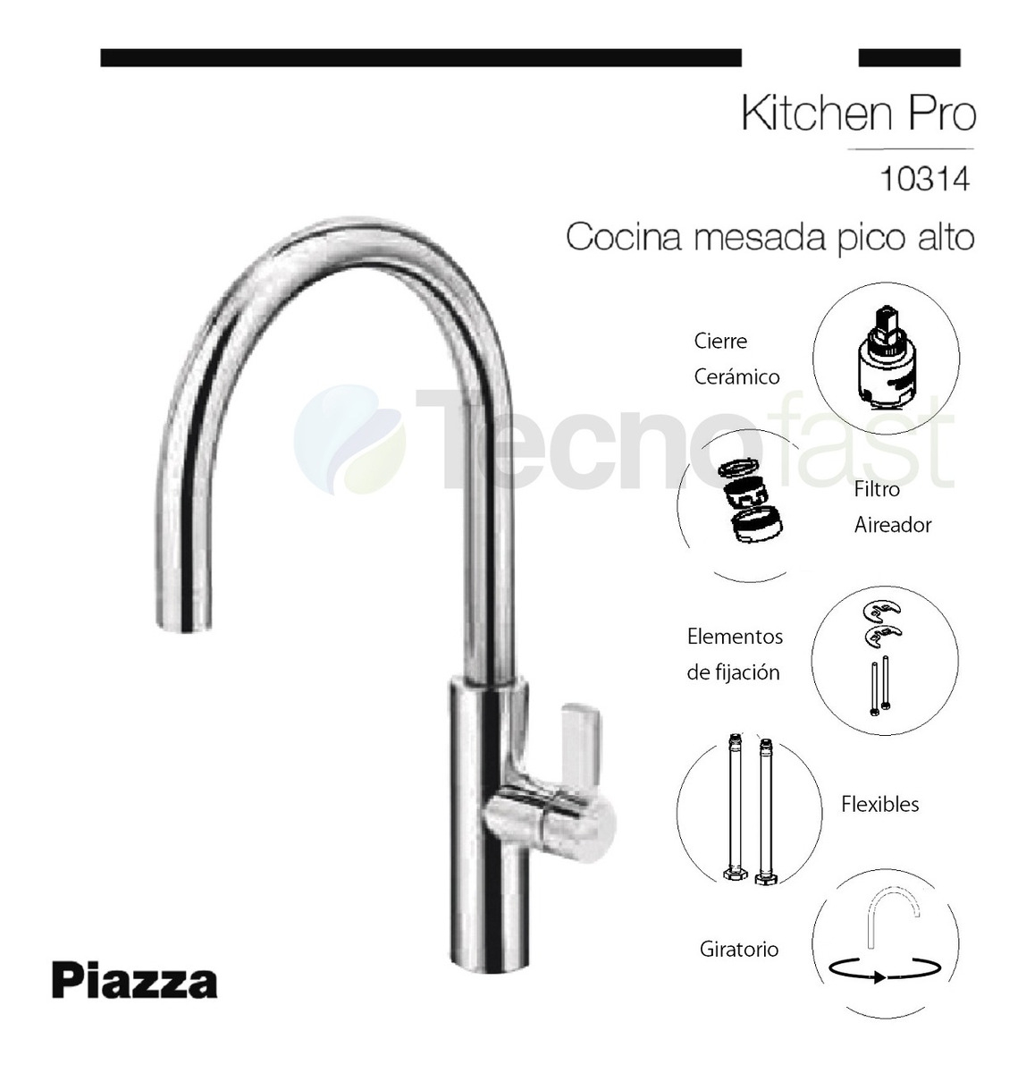 Grifo De Cocina Monocomando Piazza Kitchen Pro 10314 Cromo