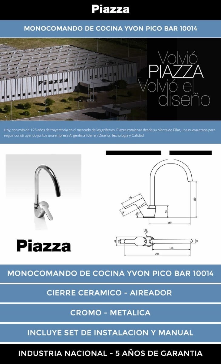 Monocomando De Cocina Yvon Pico Bar Piazza 10014