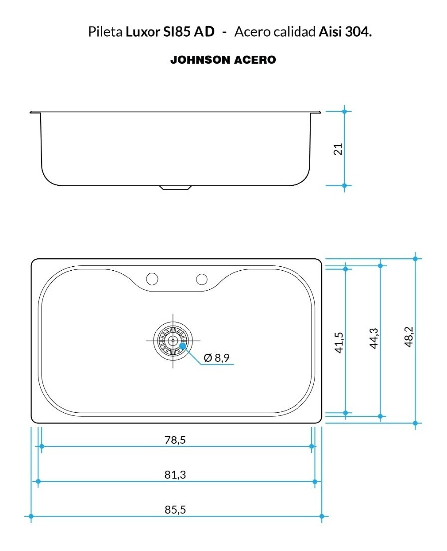 Obtené el máximo rendimiento con esta pileta simple de Johnson Acero Luxor Luxor SI85 AD. Es de acero inoxidable 304 por lo que el producto se mantiene en perfecto estado por años. Fabricada en acero inoxidable 304 que aporta rigidez y la calidad necesaria para una cocina de lujo, con un acabado pulido standard.