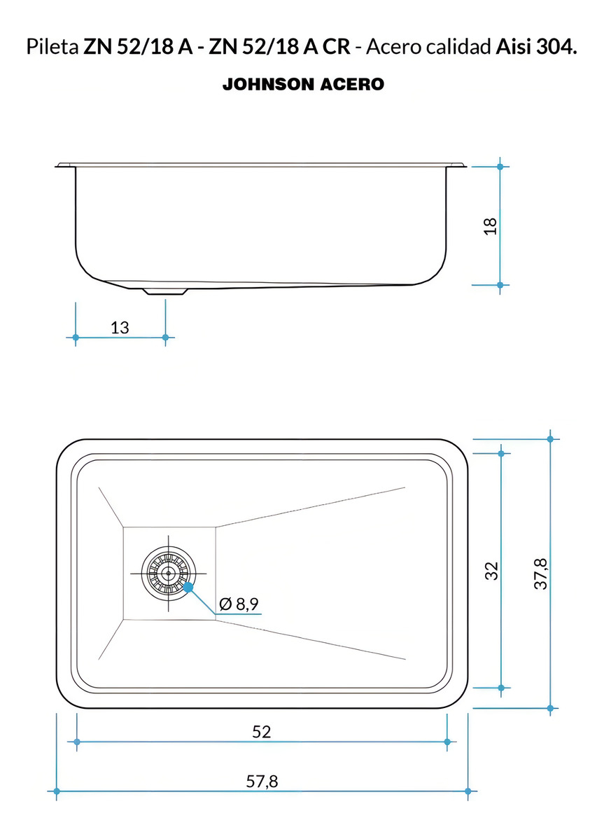 Bacha De Cocina Simple Johnson Acero Zn 52/18 A Cr Plateado