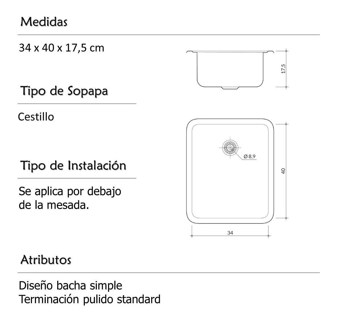 Bacha De Cocina Simple Johnson Acero Quadra Q 40 Plateado