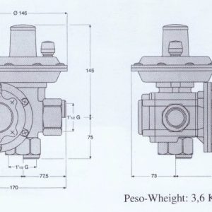 Dispositivo de bloqueo por aumento de presión: Ajustable en forma externa, interrumpe el suministro de gas en caso de que aumente la misma aguas abajo por encima del valor ajustado.