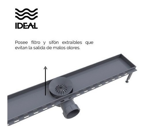 Rejilla Ideal Desague Lineal Abs Tapa Acero 60cm
