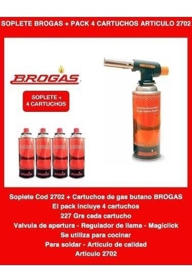 Soplete Brogas + Pack 4 Cartuchos Articulo 2702