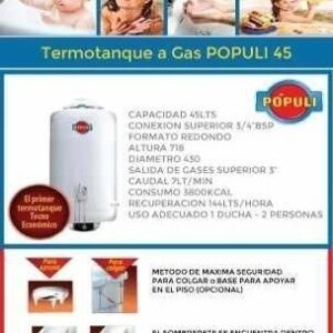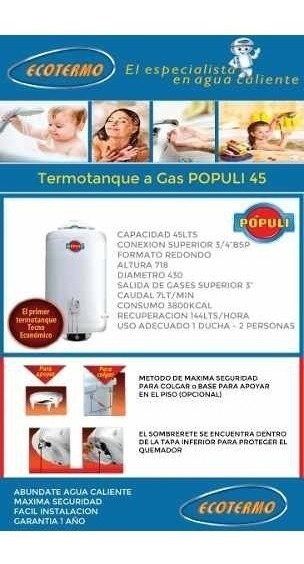 Termotanque Ecotermo Populi 45 Lts Gas Colgar C.sup